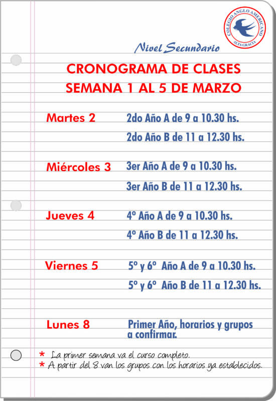 Cronograma y Nota del Equipo Directivo para el comienzo de las clases en el Nivel Secundario.